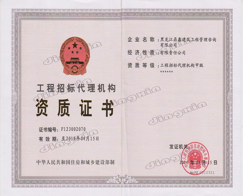 黑龍江鼎鑫建筑工程管理咨詢有限公司成立于2005年,注冊資金400萬元。具備中華人民共和國住房和城鄉(xiāng)建設部批準的工程招標代理機構資格、中華人民共和國財政部批準的政府采購招標代理機構資格、黑龍江省商務廳批準的機電產(chǎn)品國際招標代理機構資格、中華人民共和國住房和城鄉(xiāng)建設部批準的工程造價咨詢甲級資質(zhì)、黑龍江省住房和城鄉(xiāng)建設廳批準的房屋建筑工程監(jiān)理乙級(市政公用工程監(jiān)理乙級資質(zhì))。主要從事建設工程及政府采購招標、造價咨詢、工程監(jiān)理、項目管理等業(yè)務。